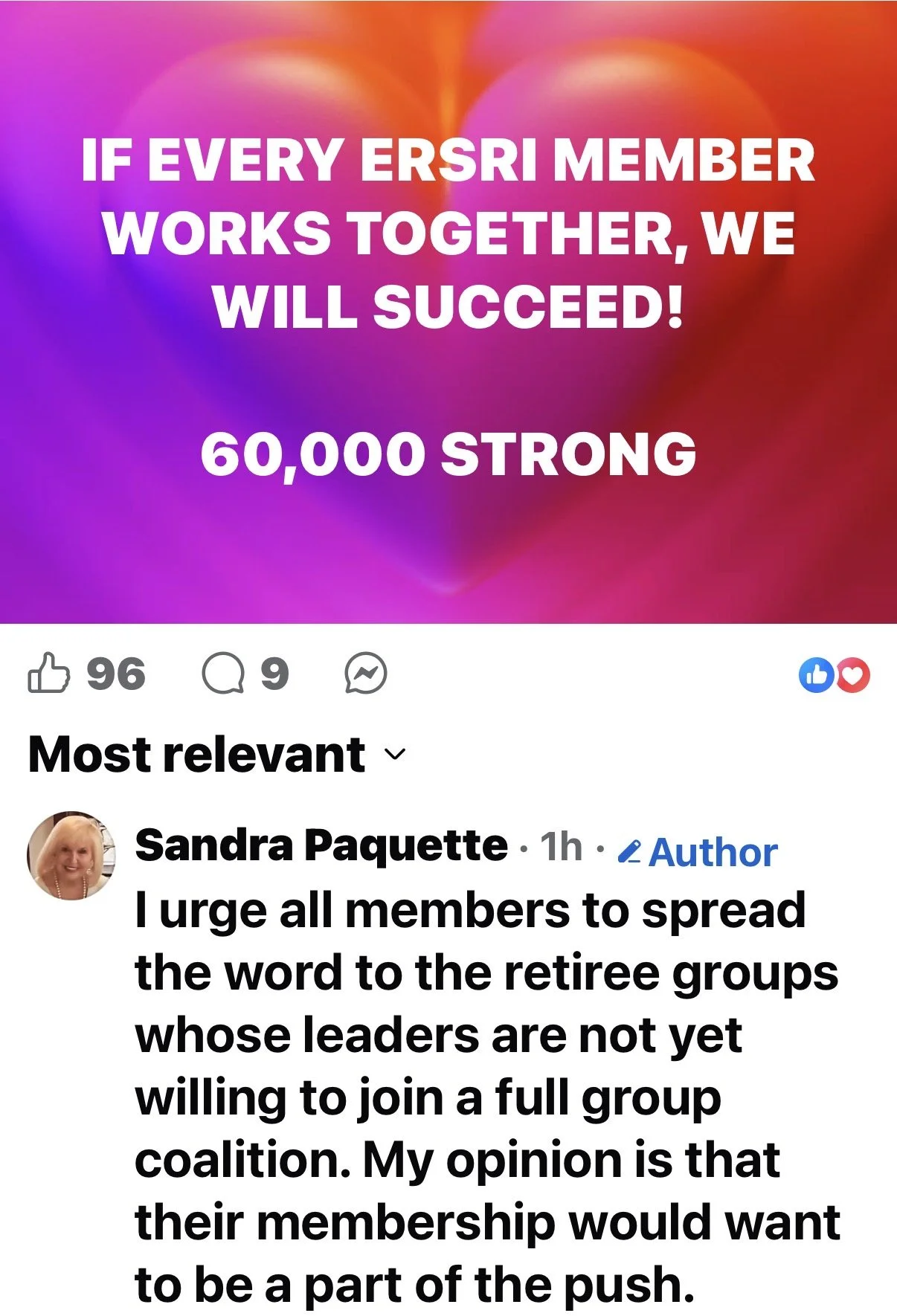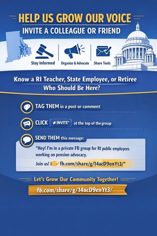 PERMANENT COLA TO ALL CURRENT AND FUTURE RETIREES! We are using the CPI to determine the COLA on full defined pension amount, and the costs will come completely from the Pension Fund (using a method which will not affect the integrity of the Trust and at NO COST TO TAXPAYERS). We have the full support of Senator Ciccone, Speaker Shekarchi, General Treasurer Diossa, and his staff.